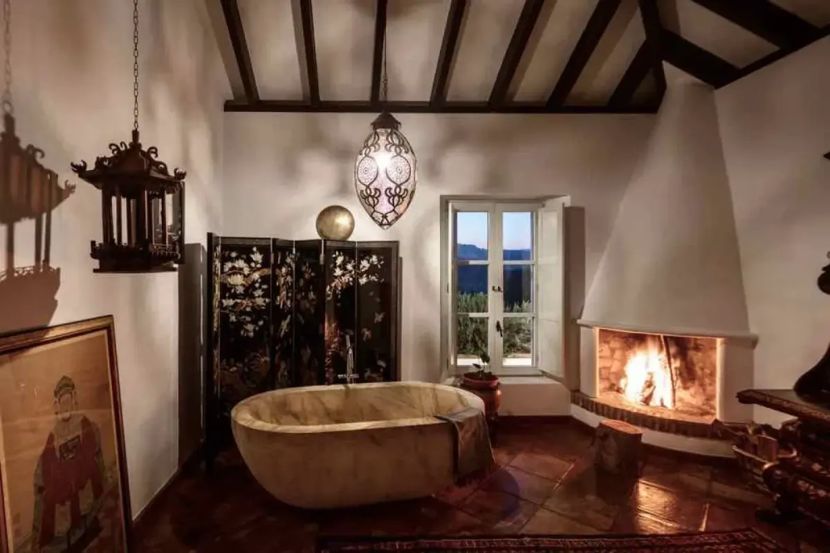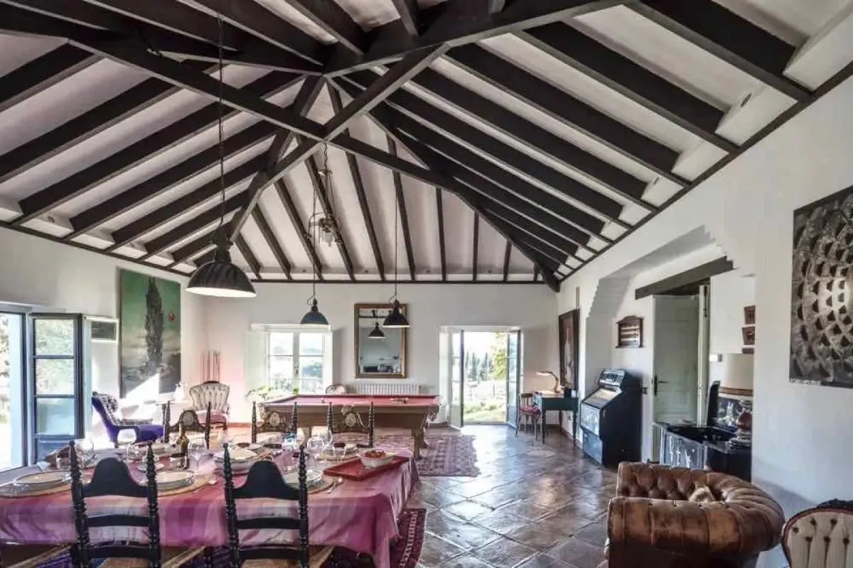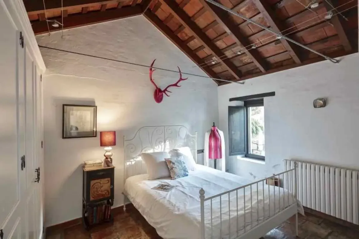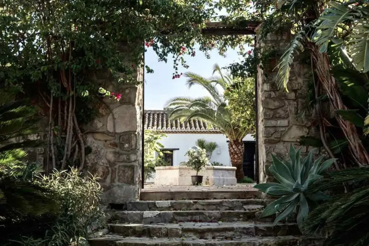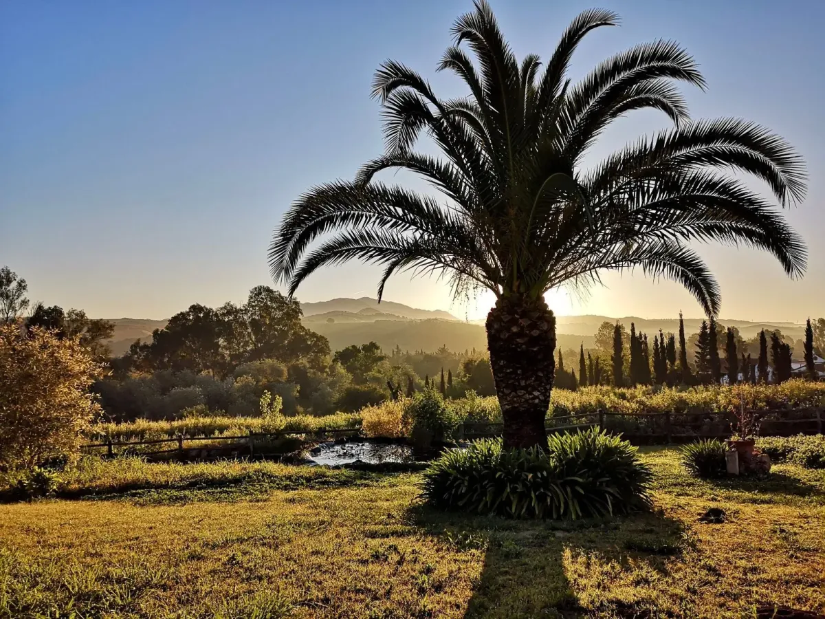 The villa is nestled within a beautiful wild garden scented with rosemary and framed by pine trees and ancient cork oaks — an idyllic setting for quiet reflection and deep restoration. From this peaceful haven, sweeping views stretch across the landscape all the way to Gibraltar.